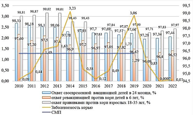 Для предотвращения вспышек кори необходим охват вакцинацией в 95%. Реальность 2023 года выглядит иначе: